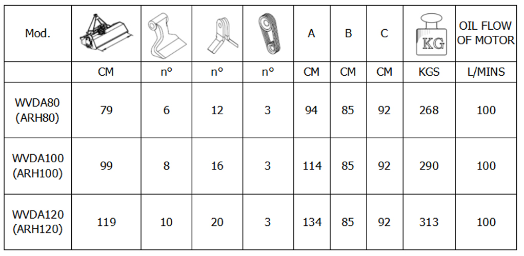 Den er designet med et 3-punkts ophæng af kategori II (kategori I tilgængelig efter anmodning) og er egnet til gravemaskiner med en effekt på 40 til 90 HK.